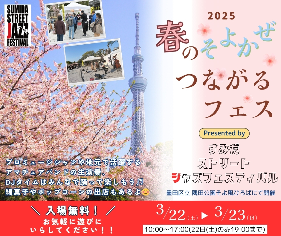 春のそよかぜつながるフェスを今年は3/22(土)・23(日)の2日間すみだジャズがジャックします!