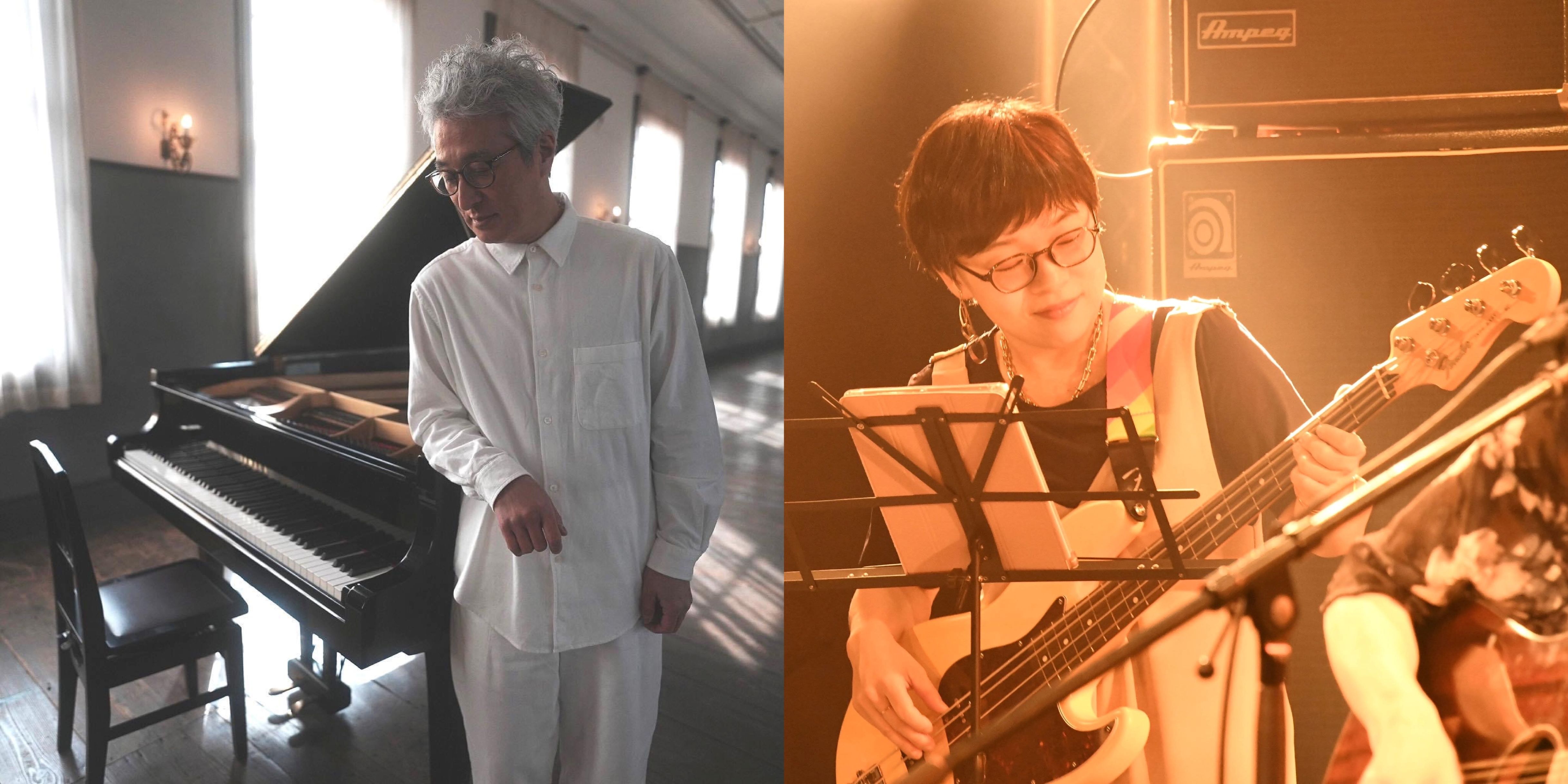福島県の郡山市から来ました!みなさんよくご存じの曲をジャズアレンジでお送りいたします!郡山市音楽の日を代表して出演するのは福島のピアノ弾き&歌うたい「白髪のピアノマン」こと佐藤紳平とベースいりたにまゆこのデュオ。